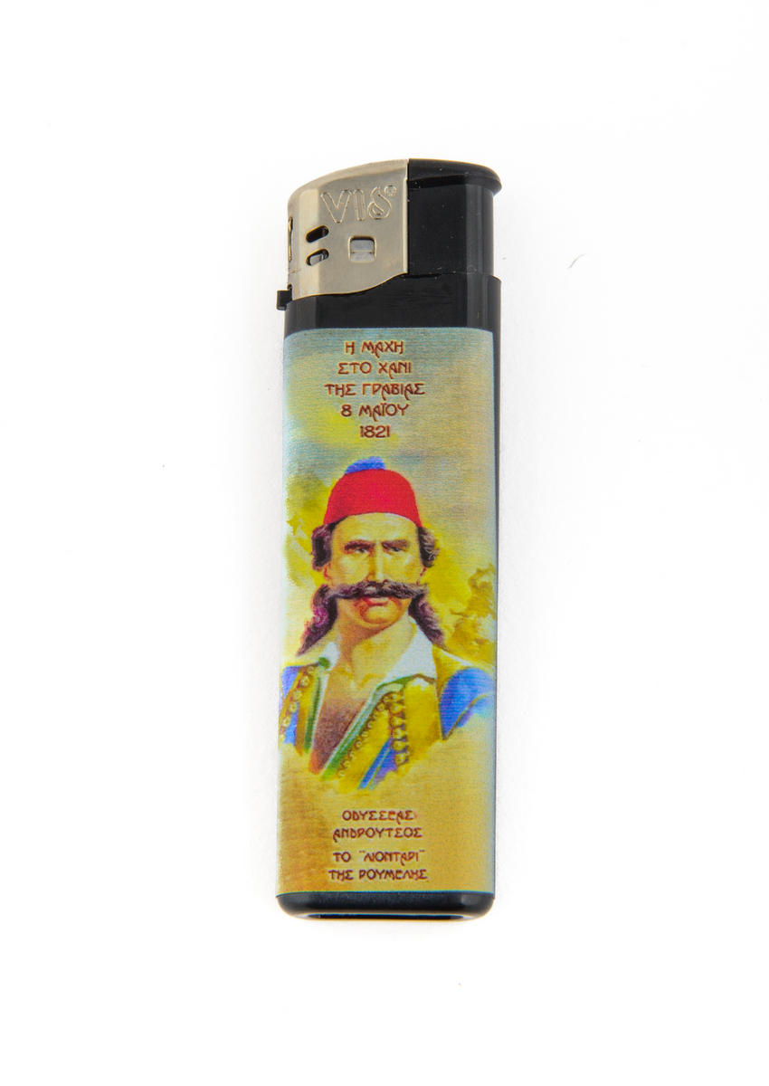 Lighter depicting Odysseas Androutsos, the hero of the Battle at the Inn of Gravia. A collectible piece for those who honor history and the struggle for freedom. Ideal for daily use or as a commemorative gift.